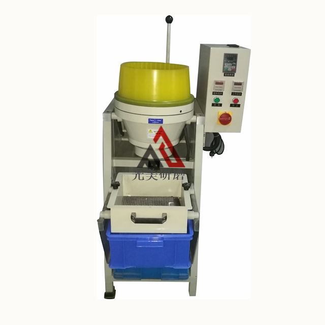 本设备由研磨盘、转动盘、耐磨环及驱动系统所组成。以每分钟30-600转高速旋转。当转动盘旋转时,研磨盘内的磨料及工件受离心力沿筒壁向上运动,然后靠零件,磨料的自重,从研磨盘高处落回到转动盘中部,如此反复、使装载物呈螺旋状不断运动,从而产生高效能的研磨。
