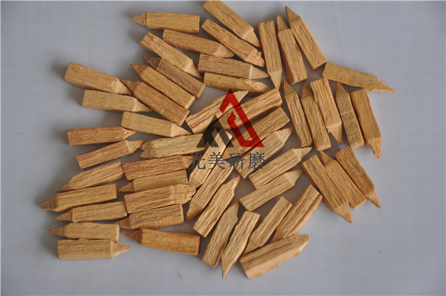 主要以木粒,竹粒等为材质,榉木粒在干式研磨抛光过程中作为中间体,粗磨时有一定的磨削力,可去除塑胶产品一定的合磨线,毛刺,中磨和幼磨抛光过程中完全无切削力,旨在使产品表面平整及使产品表面光亮度增加,最后程序加工工件可达到镜面效果。